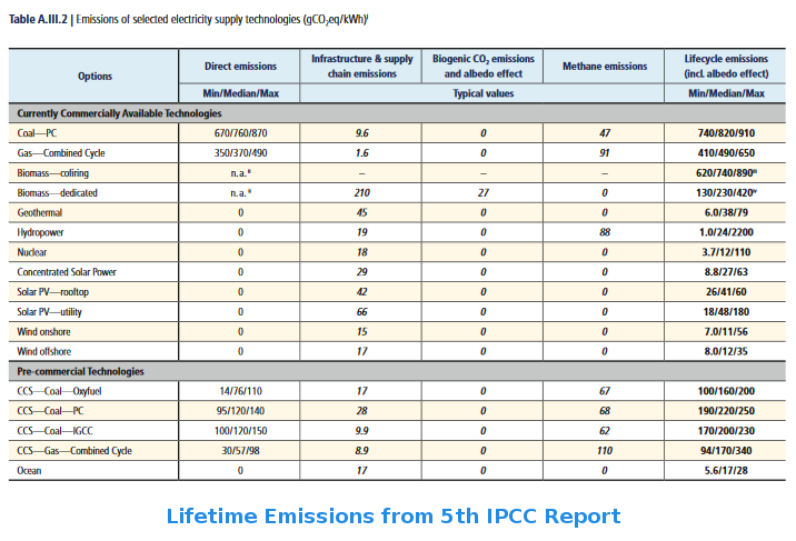 One problem with hydro is that for about the first 60 years of a new dam's life, the submerged vegetation rots and gives off CH4, so the emissions of a new dam are quite high.